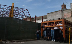 Semana Santa in Seville, a look behind (under) the screen: Costaleros (carriers) uncovered.The Costaleros are the men that do the hard work of carrying the floats around during Semana Santa. All that time they go practically unseen, because they are covered. But in the months before Semana Santa, when practicing the different and sometimes very difficult movements (rythm, accelaration, turns, jumps...) they are not. Here you have a first impression of life under the float, as a small tribute to these almost anonymous protagonists of Semana Santa: the Costaleros uncovered.